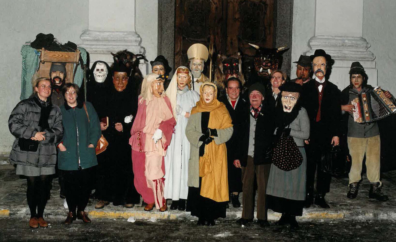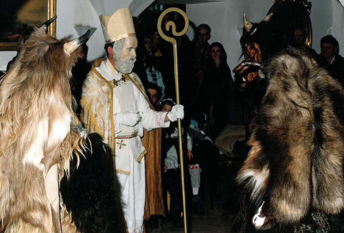 Das Nikolausspiel wurzelt im vorchristlichen Kultspiel. Viele spielerische Gestaltungen wurden durch die Missionierung in christlicher Weise umgedeutet und als Brauchtumsspiel gepflegt. Durch die Einfügung des Hl. Nikolaus in die Schar der lärmenden Maskenträger wurde der Kampf zwischen Gut und Böse zur Kernaussage des Spiels, dem künftig allerlei ernsthafte und heitere Szenen beigefügt wurden. Geblieben ist der Hauptzweck des Spiels, den Menschen an langen Winterabenden Erbauendes, Belehrenden und Heiteres zu bieten.