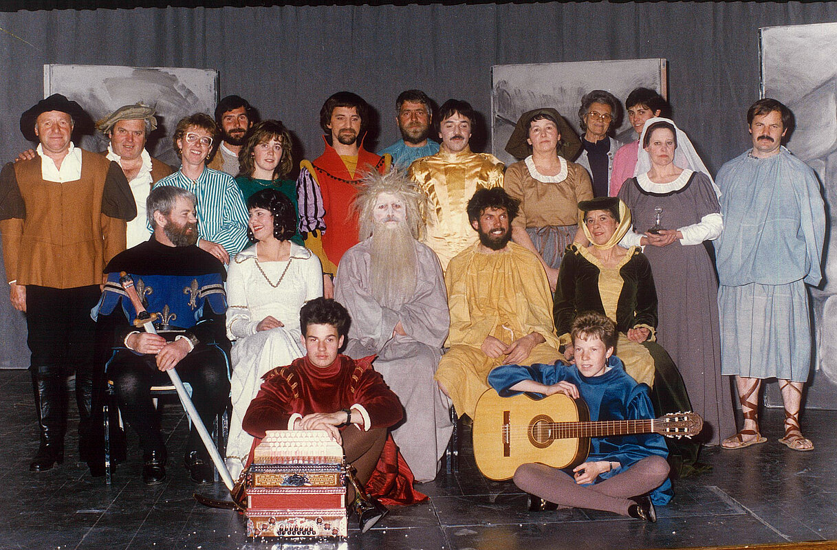 Auf der Bühne: Burgmann Martin, Egarter Irma, Hofmann Peter-Paul, Hofmann Barbara, Mairginter Peppe, Marsilli Steinmair Imelda, Niederwolfsgruber Paul, Ploner Josef sen., Rainer Adolf, Schmidbauer Hermann, Strobl Anton, Tschurtschenthaler Irmgard, Tundo Vera