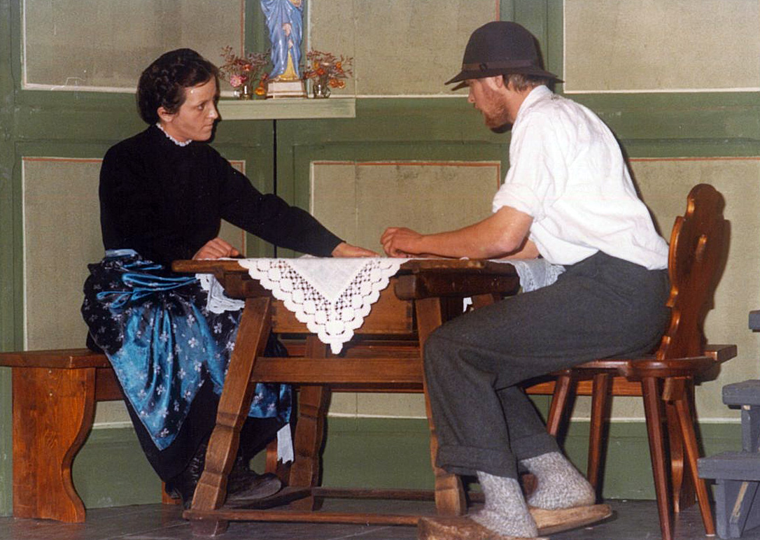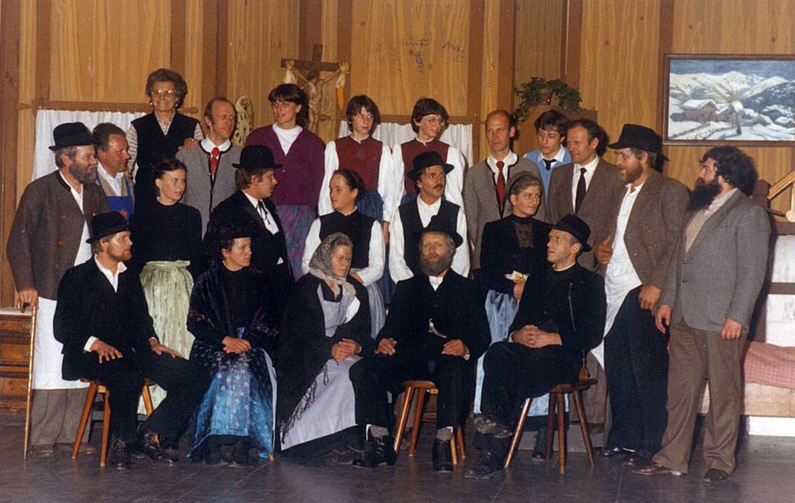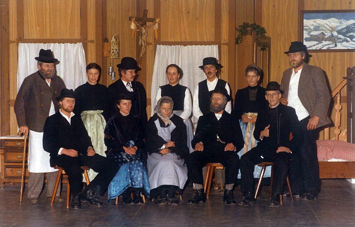 Hinter der Bühne: Feichter Angela, Goller Johann, Mair Lissi, Reichhalter Martin, Schenk Alois, Steinwandter Wilhelm, Sulzenbacher Bernadette, Summerer Alois, Tschurtschenthaler Josef