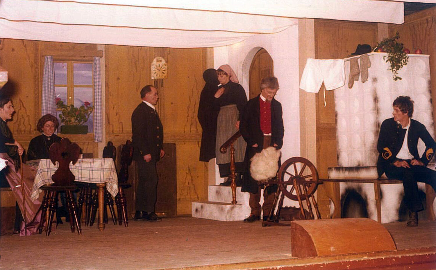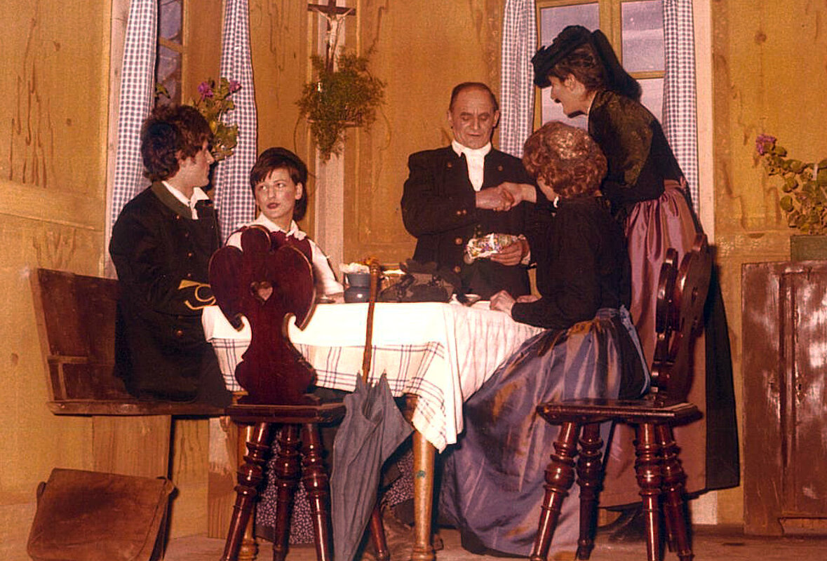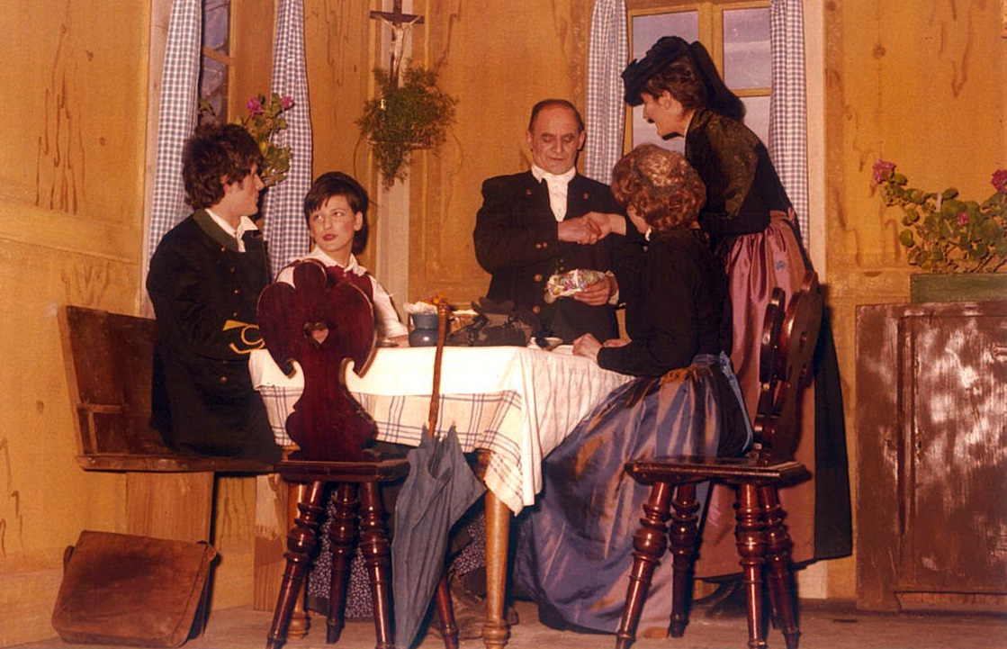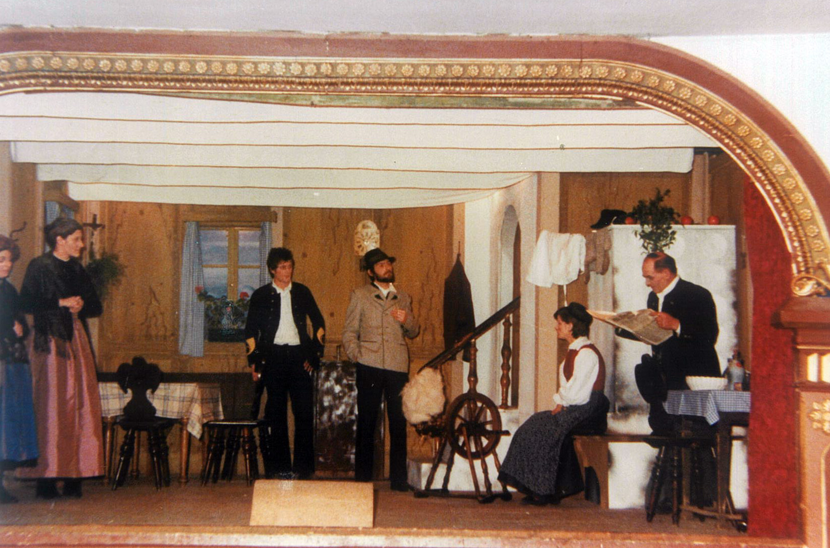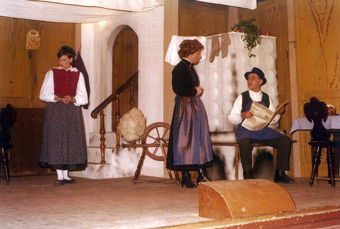 Auf der Bühne: Brugger Alois, Kraler Hubert, Mair Lissi, Mairginter Peppe, Mitterhofer Manfred, Oberhofer Annemarie, Ortner Robert, Schäfer Renate, Sulzenbacher Linda