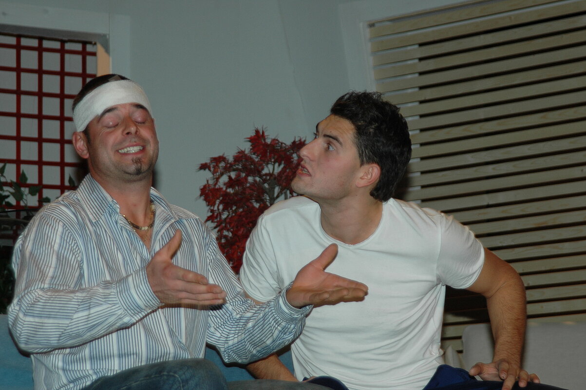 Das geht so lange, bis ein kleiner Unfall alles durcheinanderbringt. Die beiden besorgten Gattinnen bitten zwei Polizeistellen um Hilfe, diese lassen in Gestalt von zwei harmlosen Polizeiinspektoren nicht lange auf sich warten. Und so nimmt das Unheil seinen Lauf.