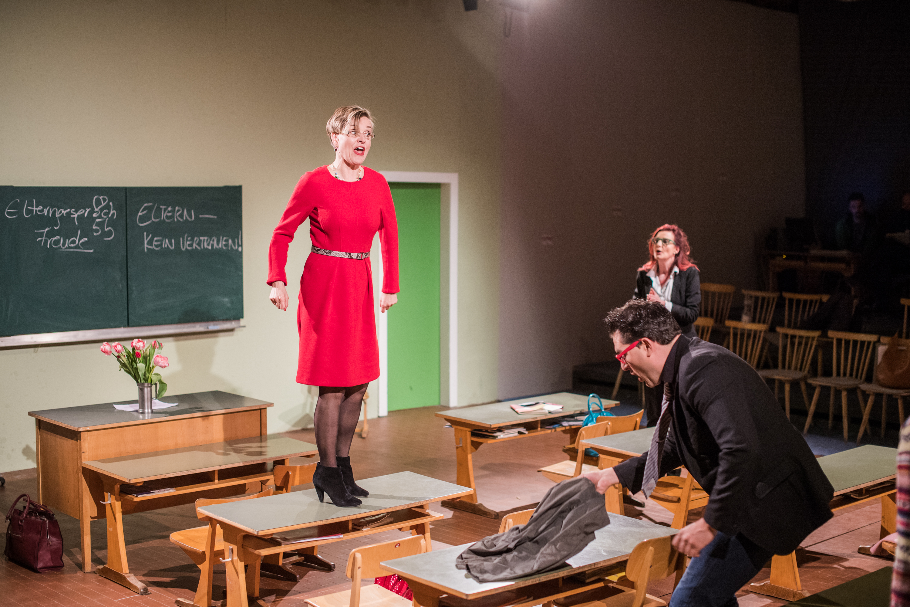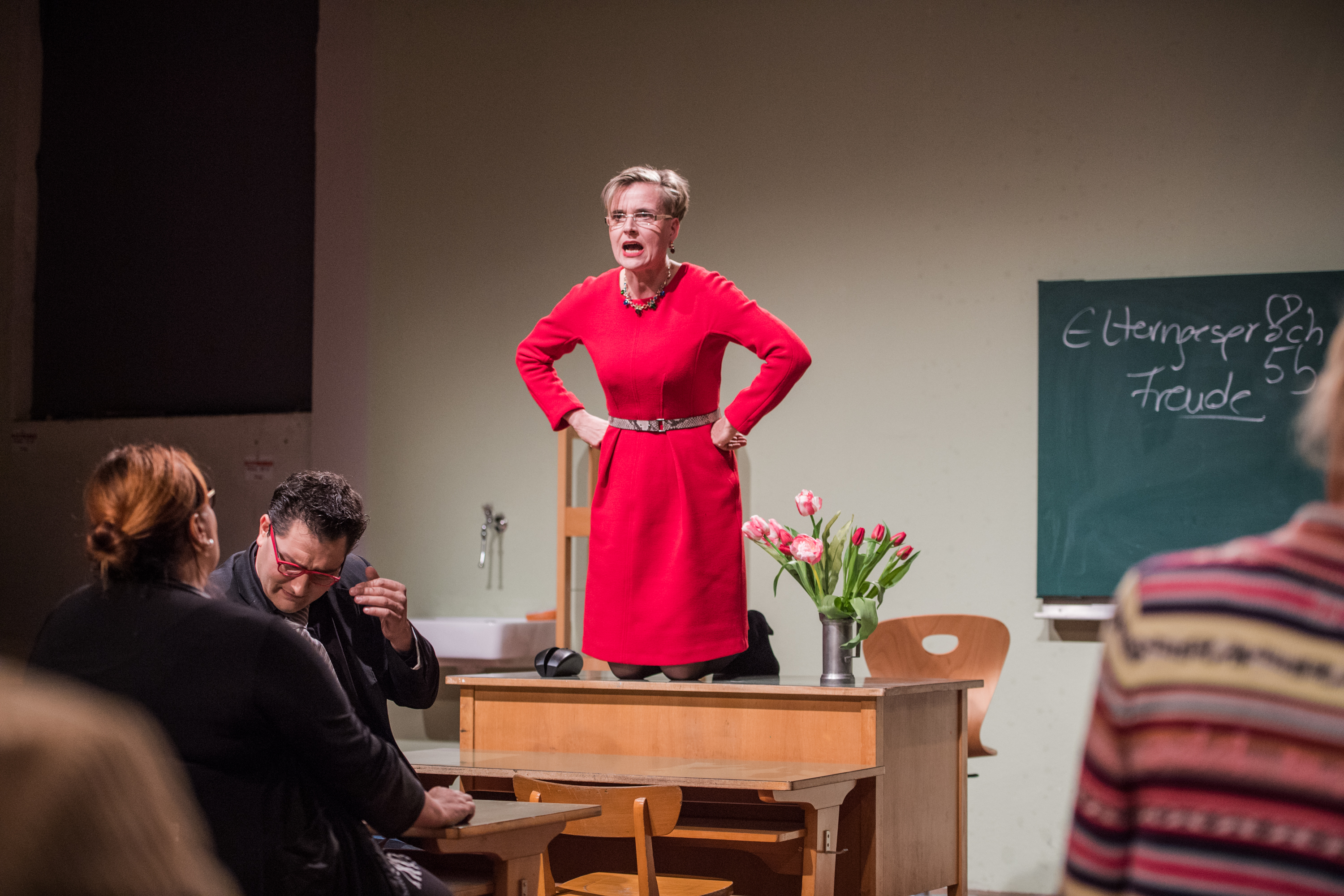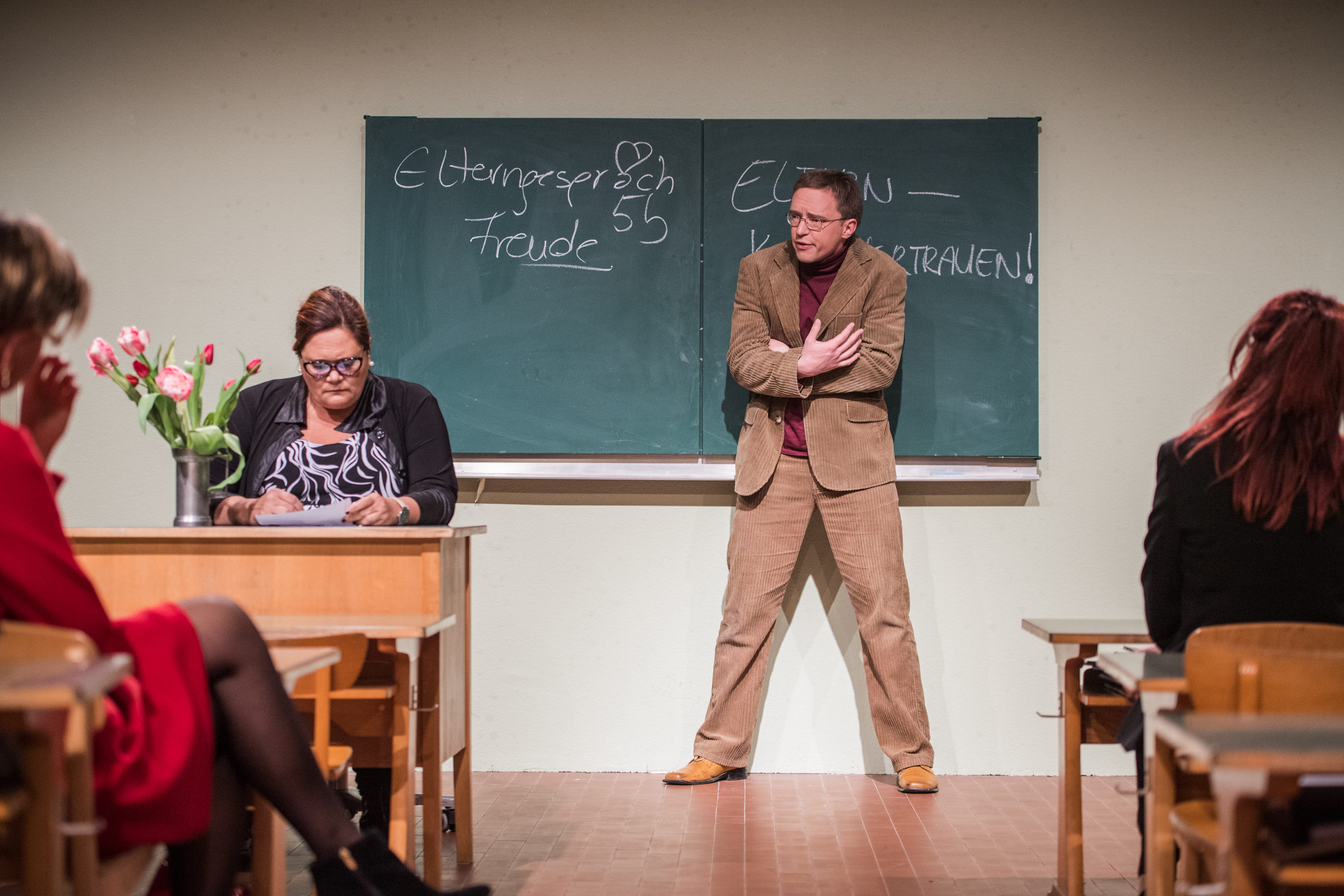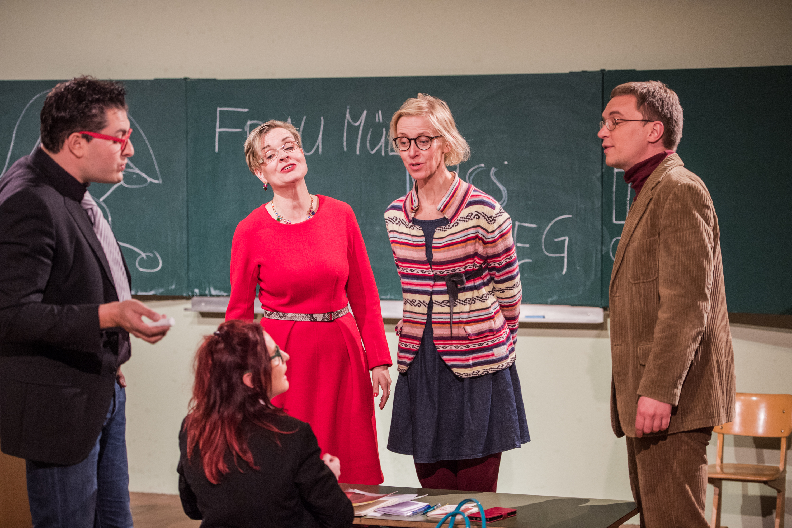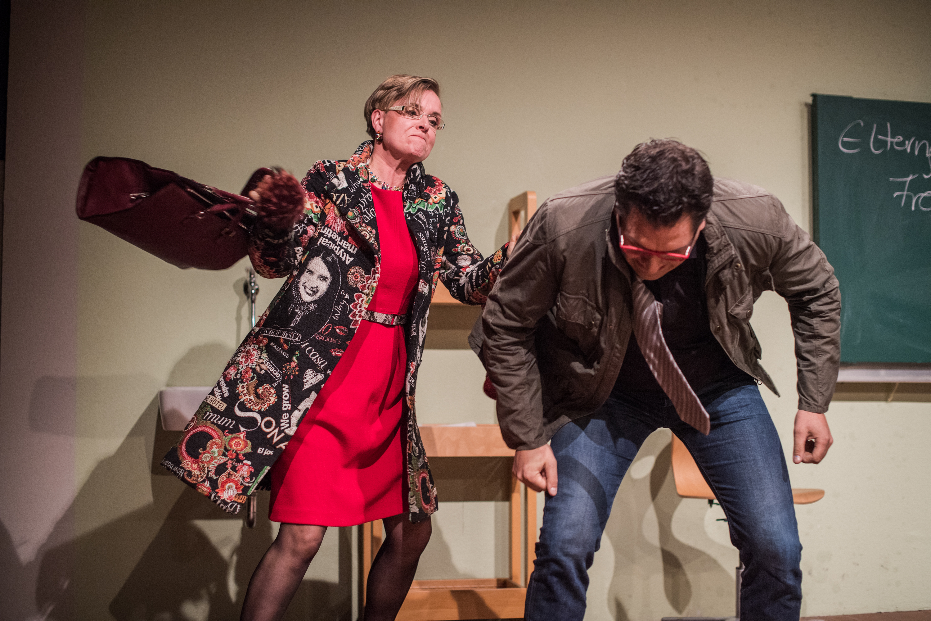 Fünf Elternvertreter einer fünften Grundschulklasse haben die Lehrerin Frau Müller um eine Unterredung gebeten, um ihr zu sagen, was sie von ihr halten: Nämlich NICHTS. Mütter wie Väter sind sich einig: Nicht die eigenen Sprösslinge sind schuld an dem miserablen Leistungsstand der Klasse, sondern allein die unfähige Lehrerin. Deshalb heißt die Parole: Frau Müller muss weg. Und zwar so schnell wie möglich! Sachlich und fair soll das Gespräch geführt werden – das haben die Eltern sich vorgenommen. Aber schon nach kurzer Zeit spielt Objektivität keine Rolle mehr und es geht ans Eingemachte: Vorwürfe, Beleidigungen, Beschimpfungen bringen die Stimmung auf den Nullpunkt. Unverrückbar vertreten die ehrgeizigen Eltern die Überzeugung, dass ihre eigenen Kinder ganz besonders begabte Persönlichkeiten sind, die zwar ab und zu spezieller Förderung bedürfen, aber jede Chance verdienen. Aber das sieht die Müller alles nicht! Im Gegenteil. Ihre Liste über die Defizite der Schüler ist lang…