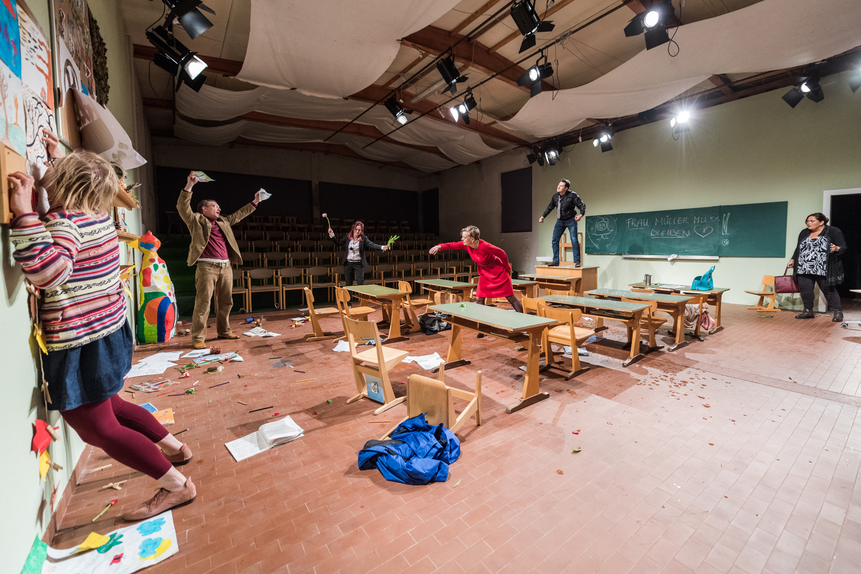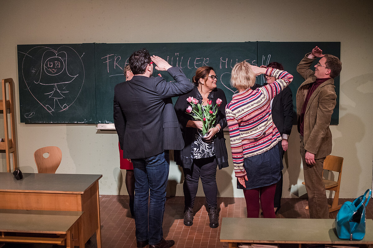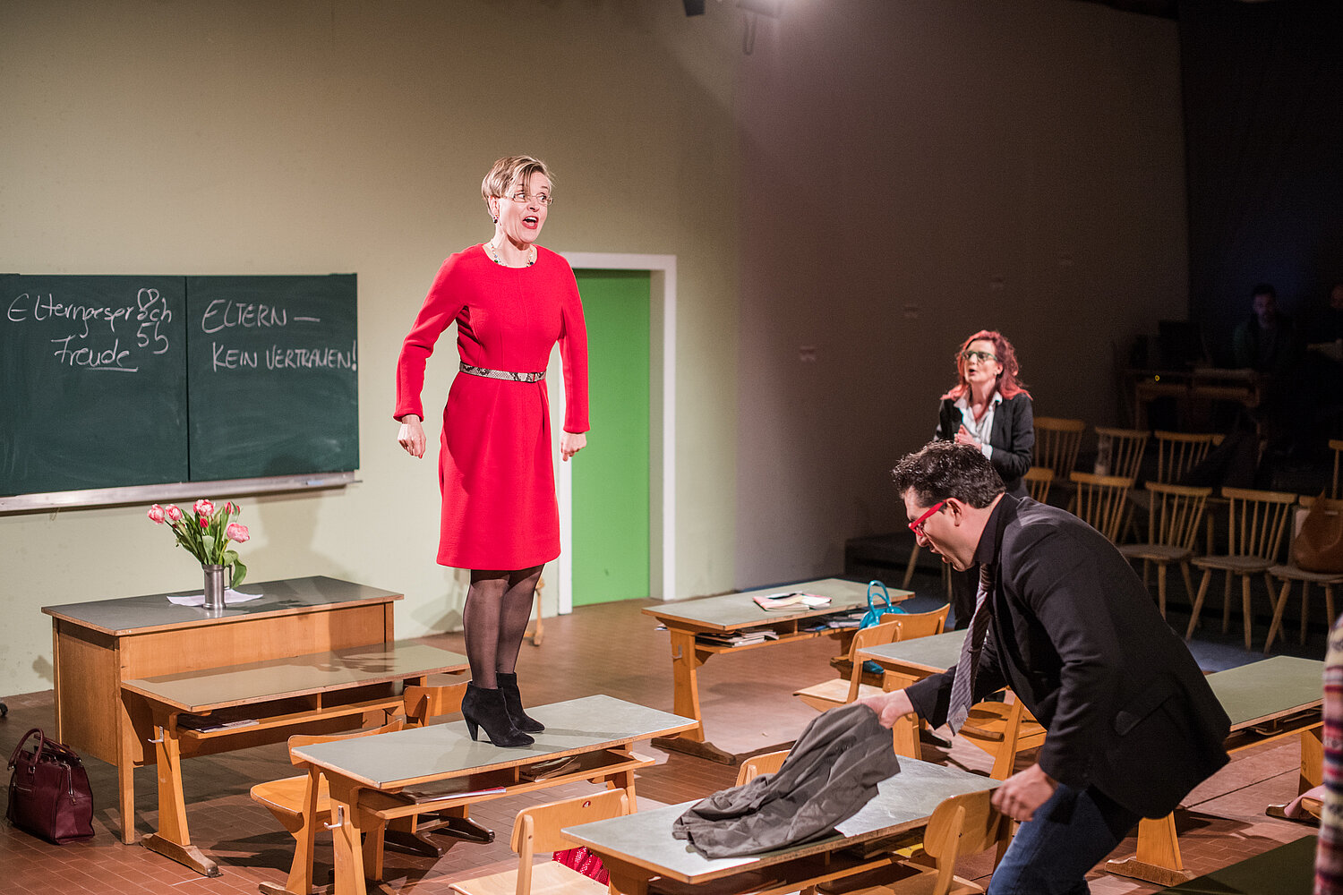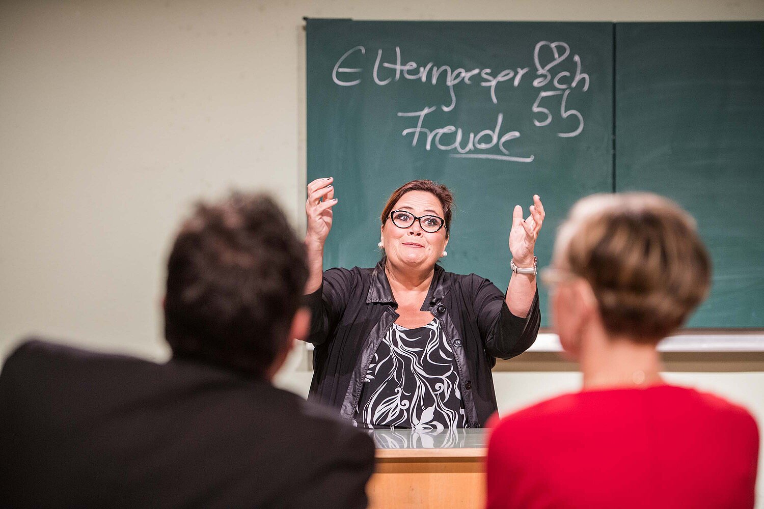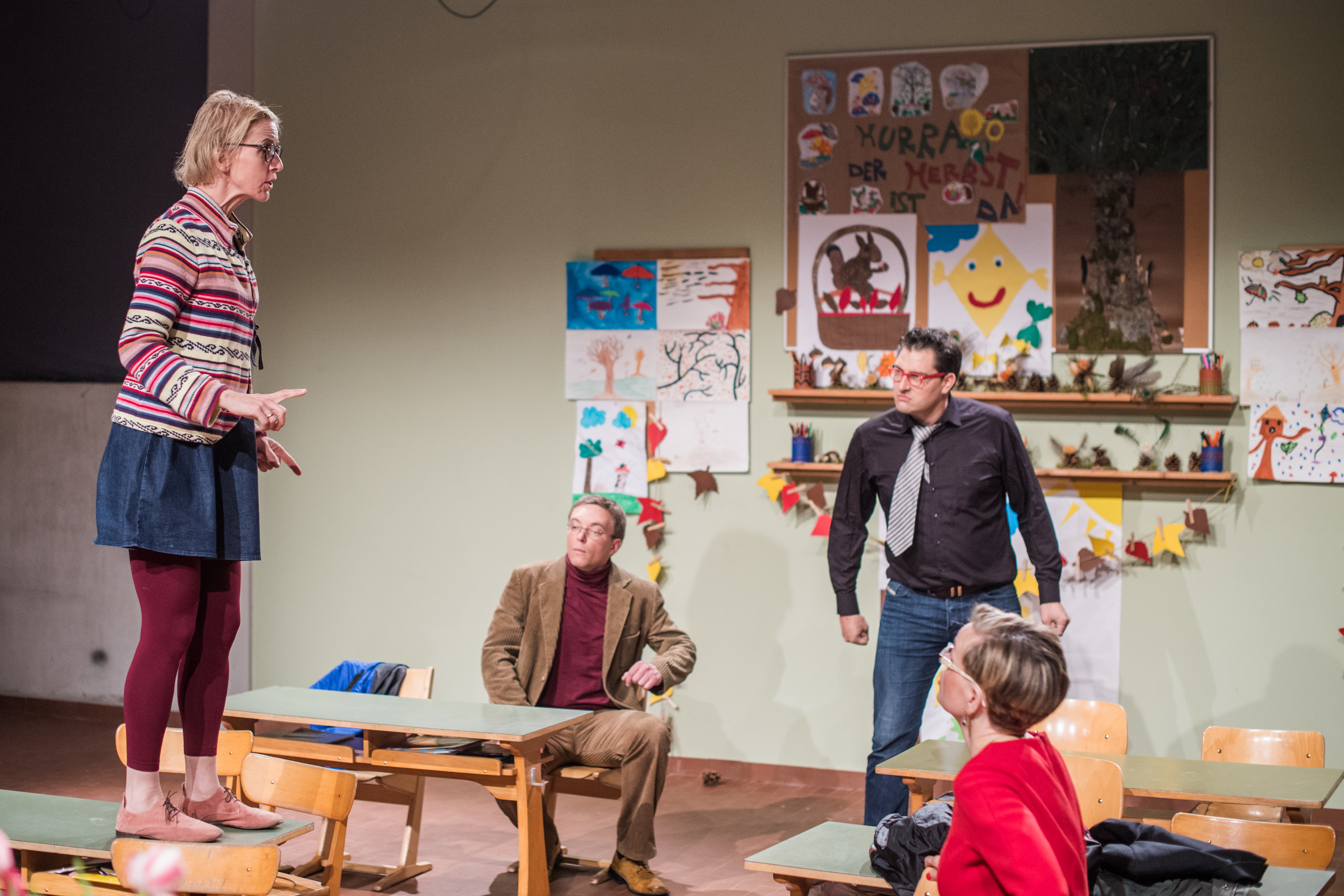 Fünf Elternvertreter einer fünften Grundschulklasse haben die Lehrerin Frau Müller um eine Unterredung gebeten, um ihr zu sagen, was sie von ihr halten: Nämlich NICHTS. Mütter wie Väter sind sich einig: Nicht die eigenen Sprösslinge sind schuld an dem miserablen Leistungsstand der Klasse, sondern allein die unfähige Lehrerin. Deshalb heißt die Parole: Frau Müller muss weg. Und zwar so schnell wie möglich! Sachlich und fair soll das Gespräch geführt werden – das haben die Eltern sich vorgenommen. Aber schon nach kurzer Zeit spielt Objektivität keine Rolle mehr und es geht ans Eingemachte: Vorwürfe, Beleidigungen, Beschimpfungen bringen die Stimmung auf den Nullpunkt. Unverrückbar vertreten die ehrgeizigen Eltern die Überzeugung, dass ihre eigenen Kinder ganz besonders begabte Persönlichkeiten sind, die zwar ab und zu spezieller Förderung bedürfen, aber jede Chance verdienen. Aber das sieht die Müller alles nicht! Im Gegenteil. Ihre Liste über die Defizite der Schüler ist lang…