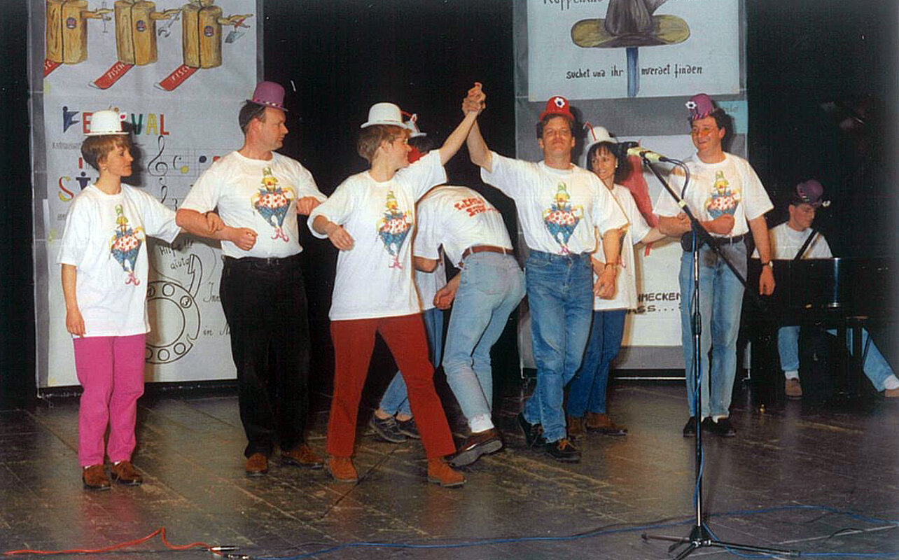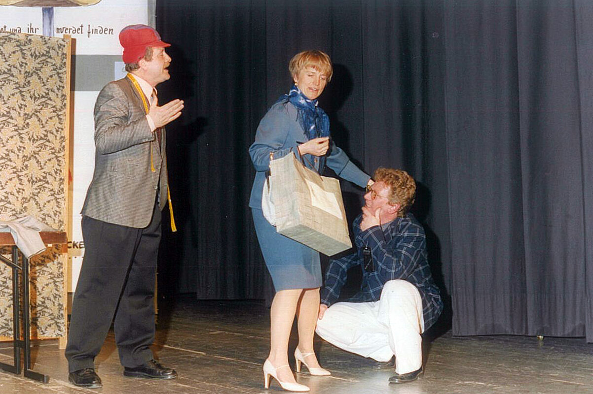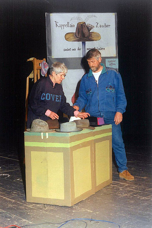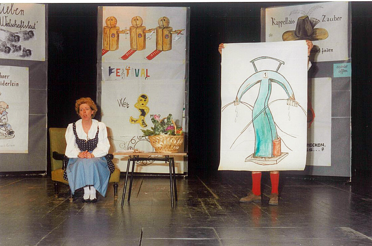 Auf der Bühne: Basso Michele, Baur Margit, Brugger Franz-Josef, Cacciotti Lukas, Delvai Robert, Hofmann Bernhard, Holzer Lisbeth, Holzer Veronika, Kiebacher Anton, Marcher Manfred, Marsilli Steinmair Imelda, Mühlmann Hans-Peter, Niederwolfsgruber Paul, Oberhofer Annemarie, Ploner Josef jun., Rainer Edi, Rainer Stefan, Schäfer Hans, Schäfer Irma, Trojer Walter, Tschurtschenthaler Josef, Weitlaner Hannes