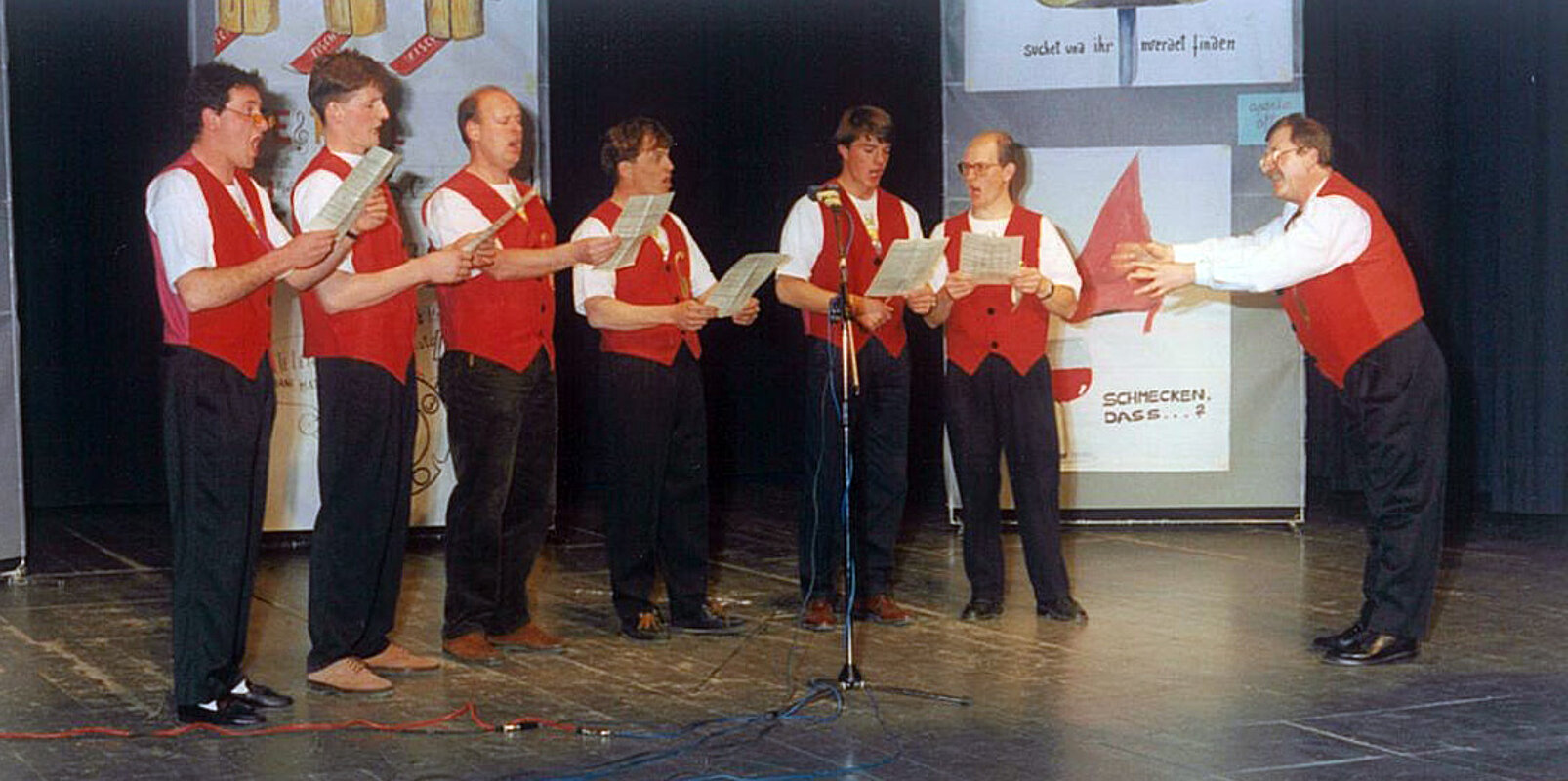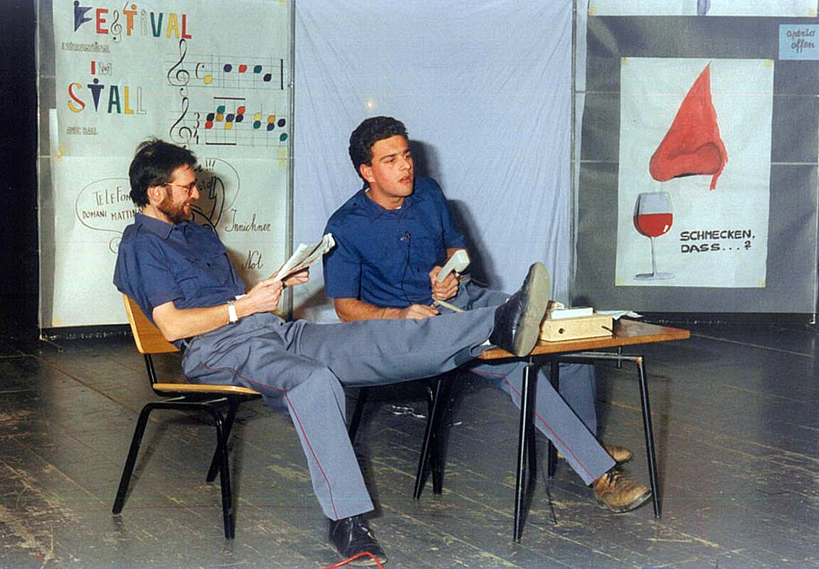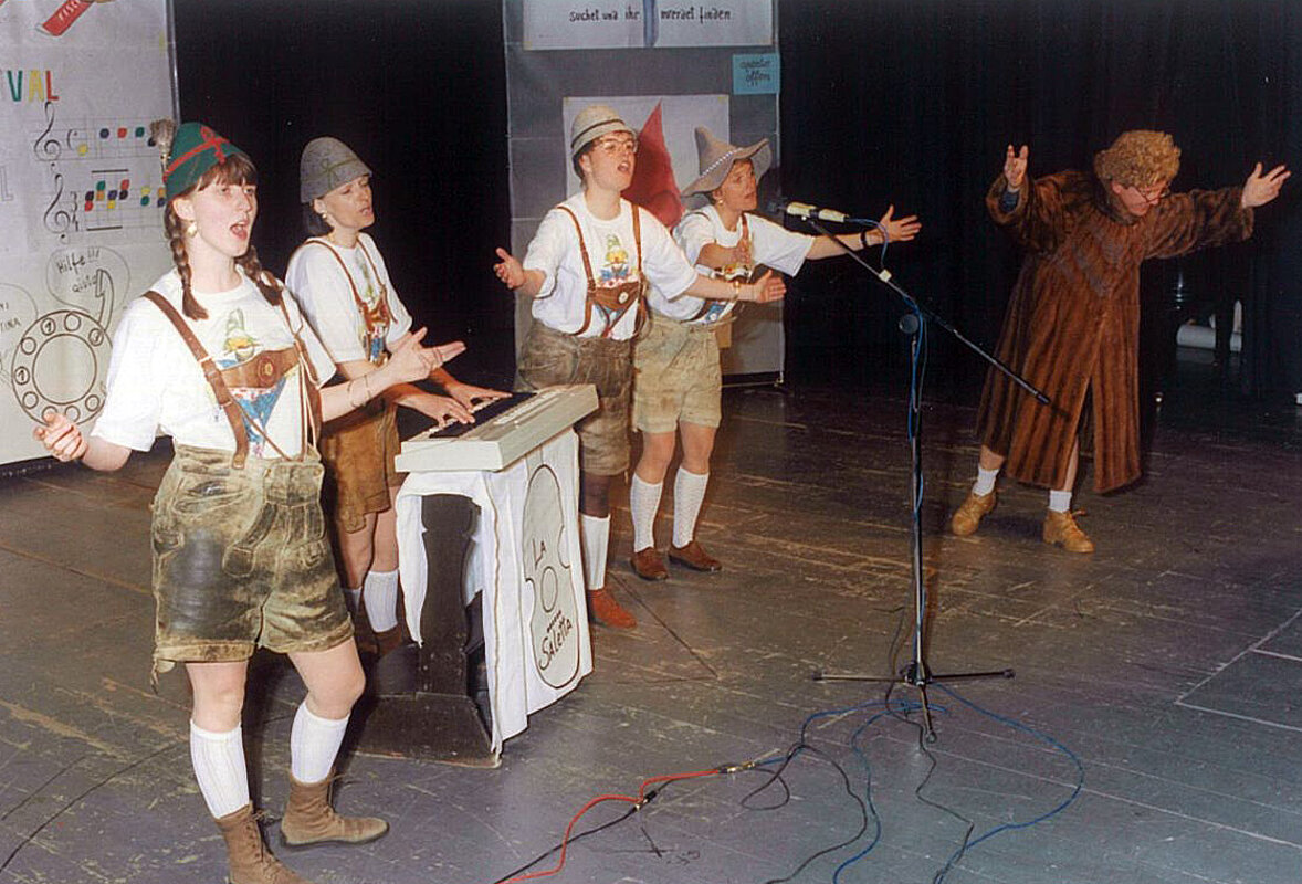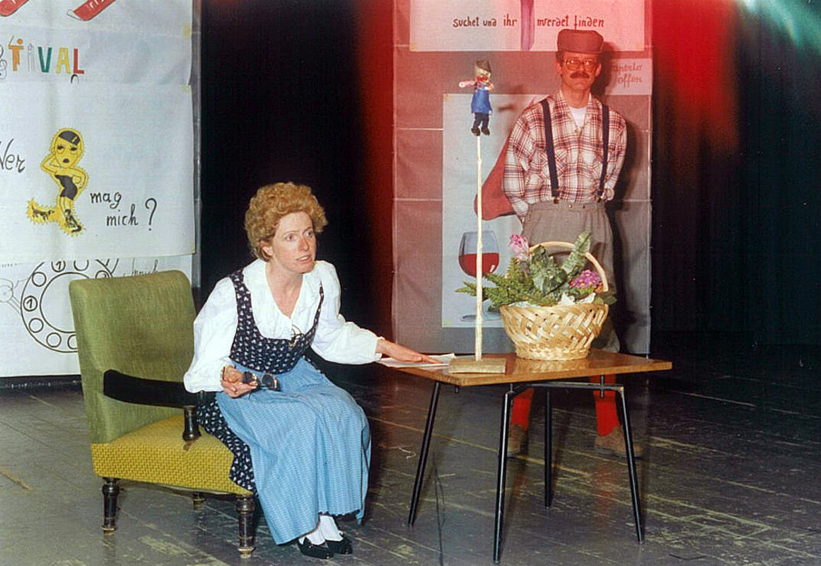Auf der Bühne: Basso Michele, Baur Margit, Brugger Franz-Josef, Cacciotti Lukas, Delvai Robert, Hofmann Bernhard, Holzer Lisbeth, Holzer Veronika, Kiebacher Anton, Marcher Manfred, Marsilli Steinmair Imelda, Mühlmann Hans-Peter, Niederwolfsgruber Paul, Oberhofer Annemarie, Ploner Josef jun., Rainer Edi, Rainer Stefan, Schäfer Hans, Schäfer Irma, Trojer Walter, Tschurtschenthaler Josef, Weitlaner Hannes
