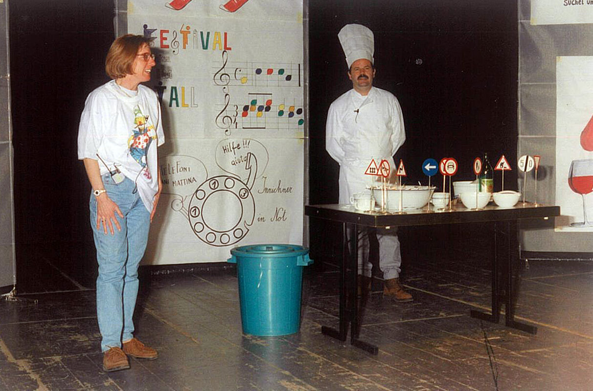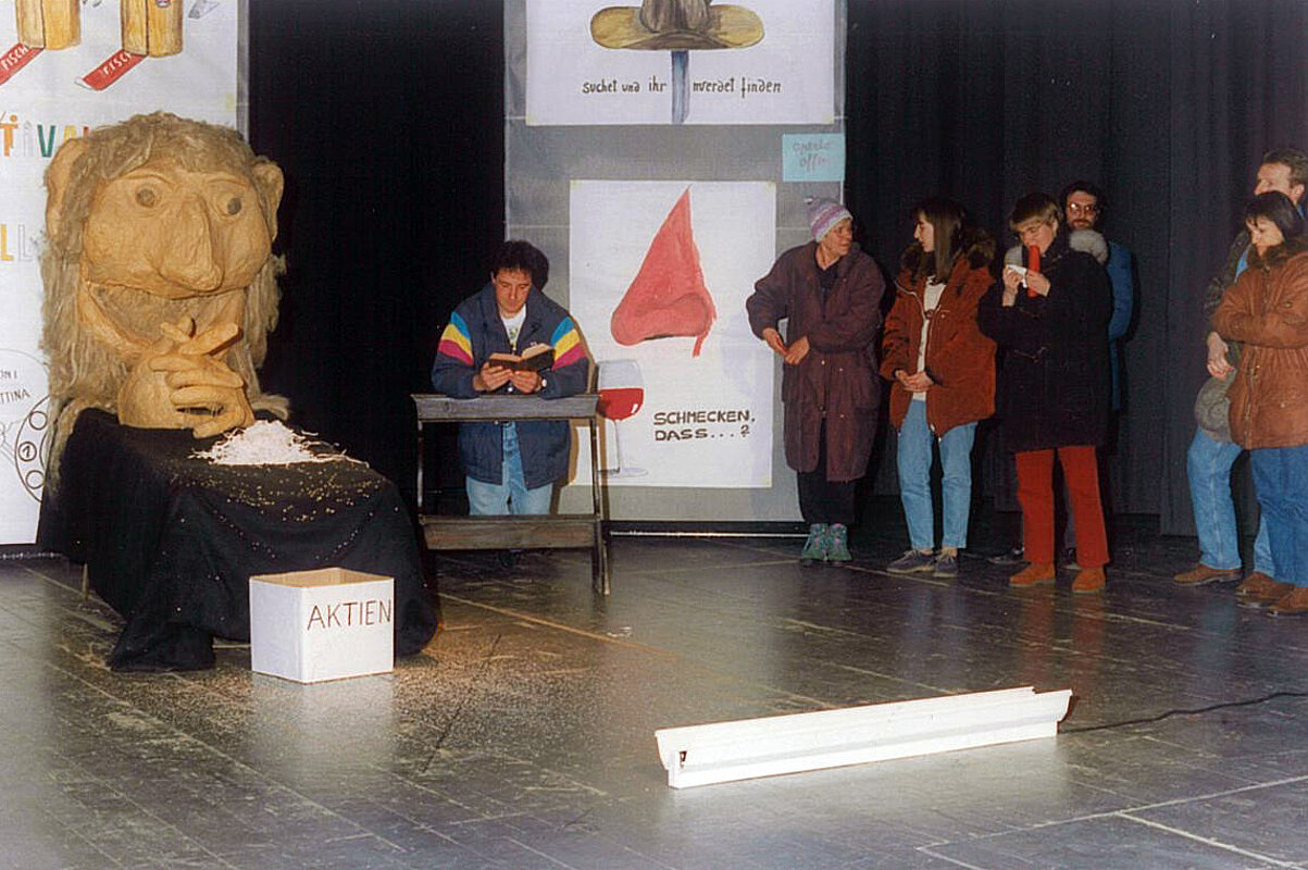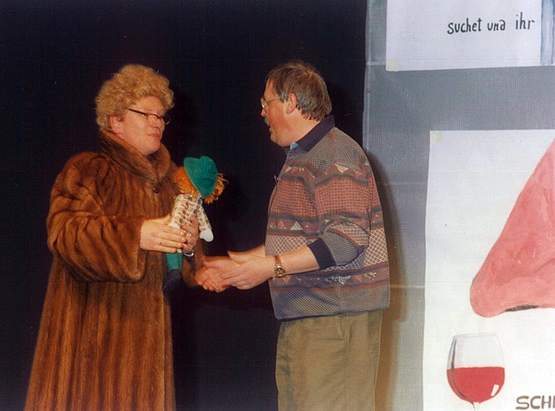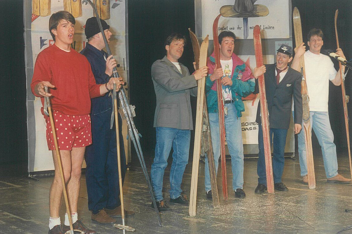 Den Spinnichner Faschingsabend 1993 gestaltete die TWI, die mit viel Fantasie und Akribie das Dorfgeschehen und dessen Akteure spinnichnerisch unter die Lupe nahm. Aufs Korn genommen wurde alles, was in Innichen Rang und Namen. Vor allem das neue Verkehrskonzept lieferte reichlich Stoff für süffisante Sketche und Lieder. Während der Aufführung wurde erstmals der „Narrische Haunold“ verliehen. Erster Preisträger: Landeshauptmann Luis Durnwalder. (Dolomiten)