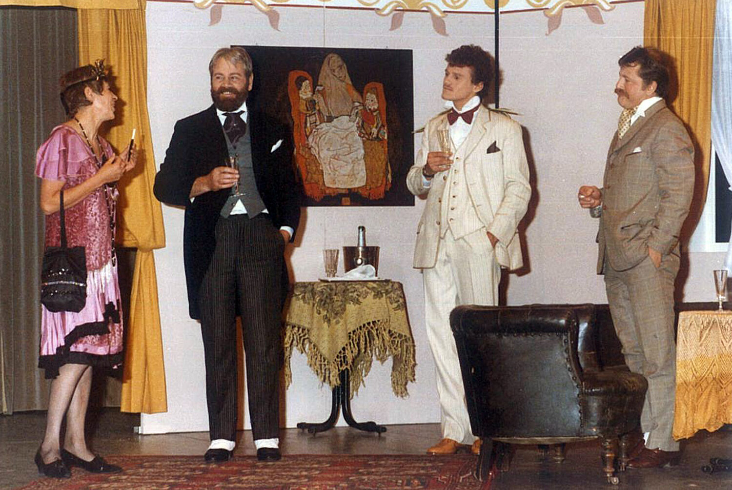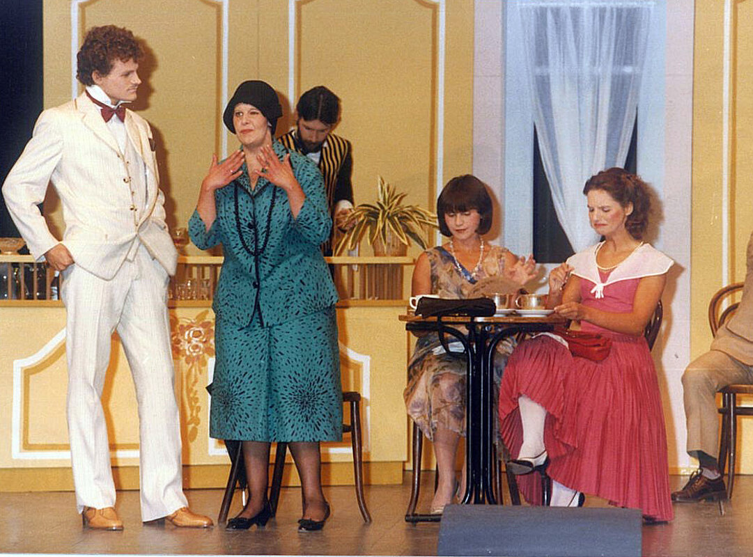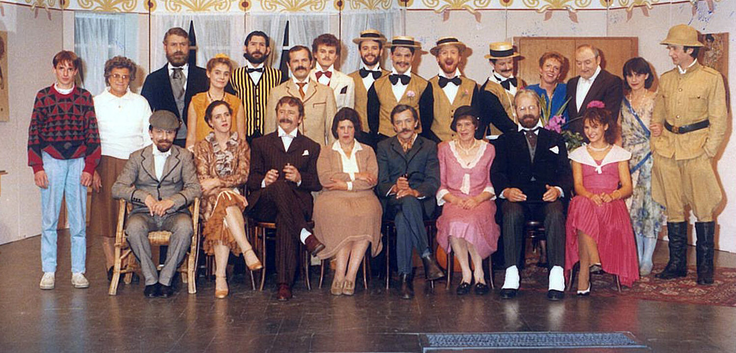 Auf der Bühne: Bergmann- Sigrid, Brugger Elisabeth, Caporal Irene, Feichter Wilhelm, Holzer Walter, Kerschbaumer Hansjörg, Kiniger Johanna, Mairginter Peppe, Marsilli Steinmair Imelda, Niederwolfsgruber Paul, Oberstaller Eugen, Ortner Robert, Schmid Karl, Schmidbauer Hermann, Schönegger Edmund, Strobl Anton, Thomaser Alfred, Trojer Walter, Tschurtschenthaler Josef, Tundo Vera